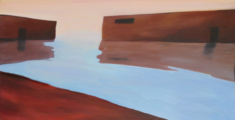 Większość mojego malowania to opowieści o wodzie w różnych jej postaciach i odsłonach. Maluję akrylami, więc woda jest fizycznie obecna na płótnach podczas samego procesu tworzenia, nierzadko zostawiam jej bardzo widoczny ślad, jakby podpis wody z odrobiną pigmentu. W niektórych fragmentach obrazu woda maluje samą siebie, zaznacza swoją fizyczną obecność nie tylko poprzez iluzję odwzorowania, ale poprzez same właściwości fizyczne wody poddanej na płótnie grawitacji.